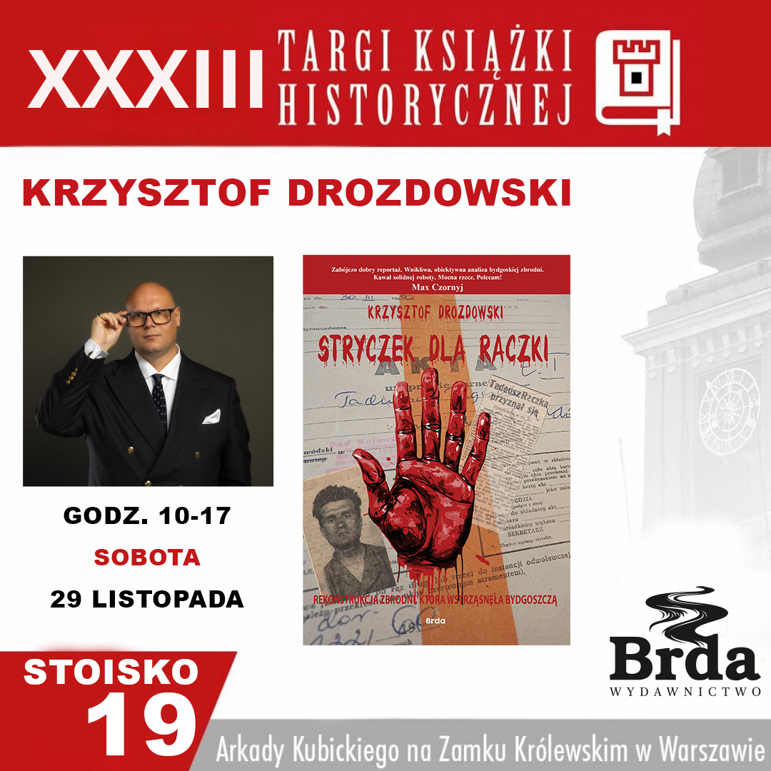 Jak co roku będę uczestniczył w w Targach Książki Historycznej w Warszawie. Serdecznie zapraszam na stoisko Wydawnictwa Brda, gdzie będę dostępny od piątku do niedzieli. Zapraszam również na stoisko wydawnictwa Skarpa Warszawska, gdzie będę pełnił dodatkowy dyżur autorski.